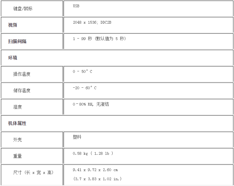 超高视频分辨率 - 高达2048 x 1536; DDC2B