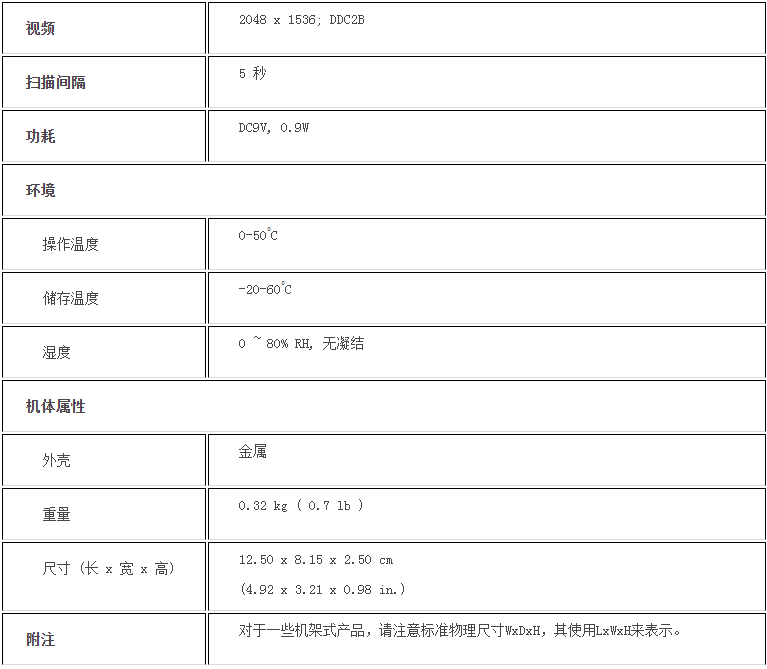支持超高视频质量-视频分辨率可达2048x1536;且支持DDC2B功能