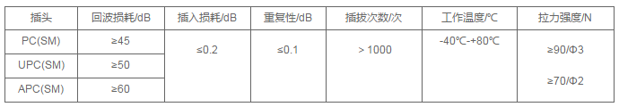 连接衰减:≦0.5dB(包括互换和重复) 互换回波损耗:≧35dB 插拔耐久性寿命:>1000次仍能满足衰减要求。
