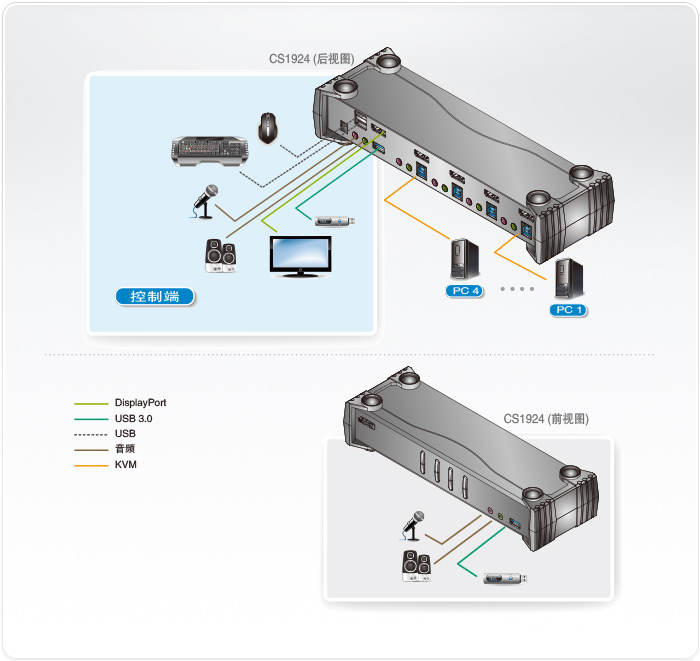 支持KVM、USB 与音频独立切换,提升系统操作的弹性