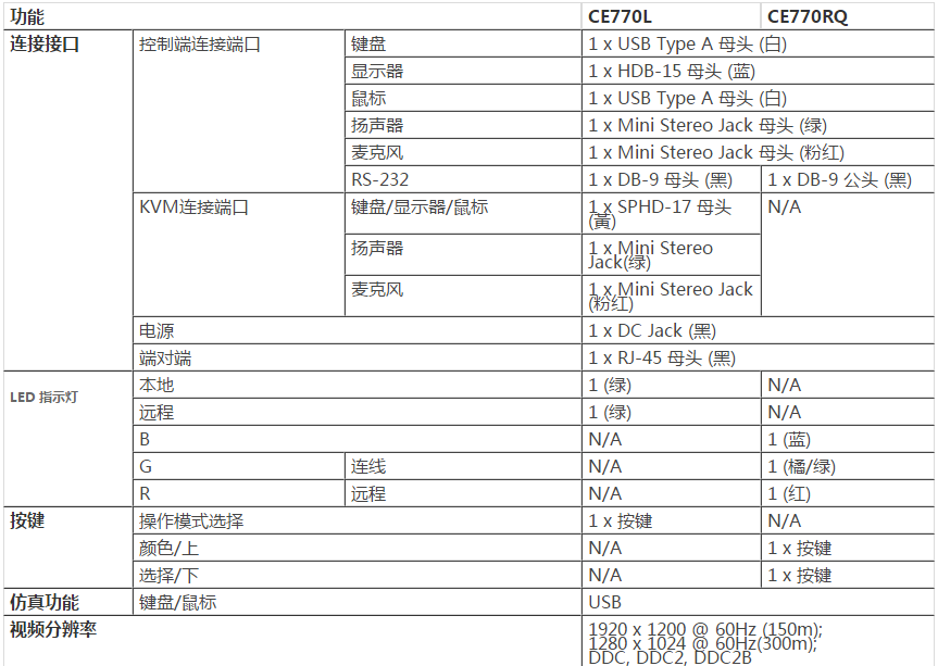 高视频分辨率 - 高达1920x1200@60Hz(150m);1280x1024@60Hz(300m)