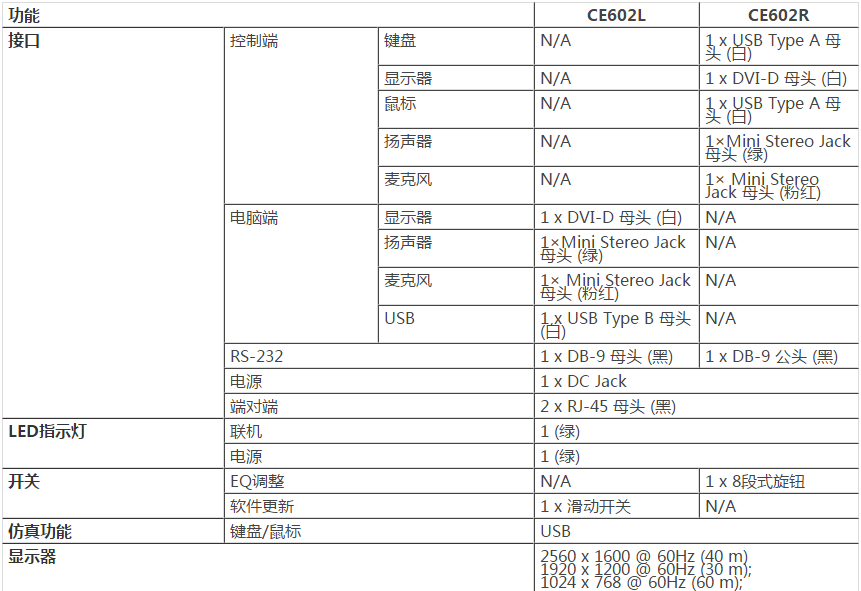 高视频分辨率–高达2560x1600@60Hz(DVI Dual Link) 40m;1920x1200@60Hz 30m;1024x768@60Hz 60m--信号经过长距离传递依旧拥有绝佳的屏幕效果