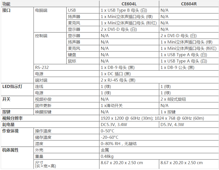 高视频分辨率-高达1920x1200@60Hz(30m),1024x768@60Hz(60m)