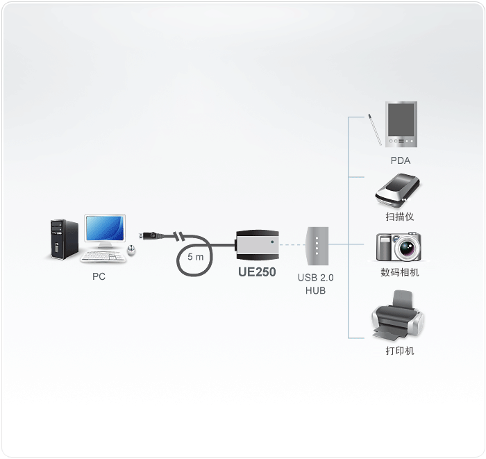 可延长USB设备的使用距离,远可达5m