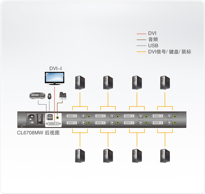 操控8 台USB DVI(Single Link) 接口电脑