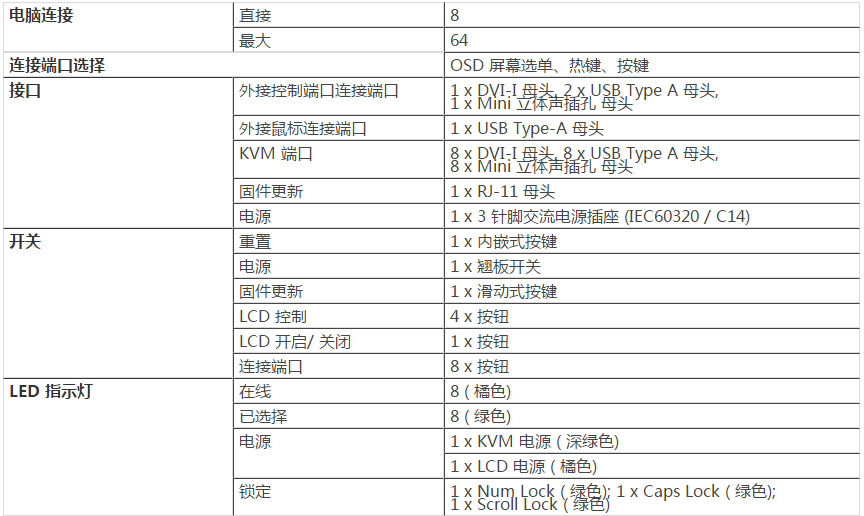 配备17.3”宽屏幕DVI 全高清LCD 显示器的KVM 多电脑切换器