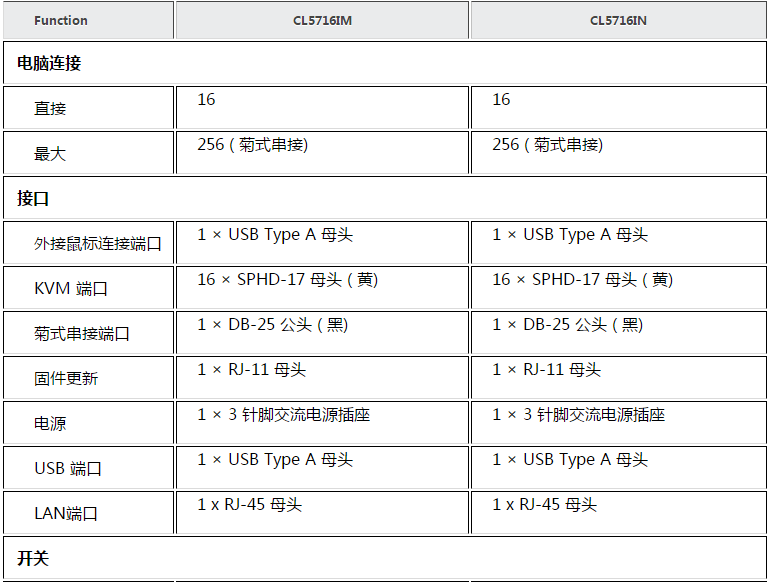 菊式串接另外15台设备- 单一控制端可管理高达256 台服务器(兼容的KVM多电脑切换器包括ACS1208A、ACS1216A、CS1708A、CS1716A)