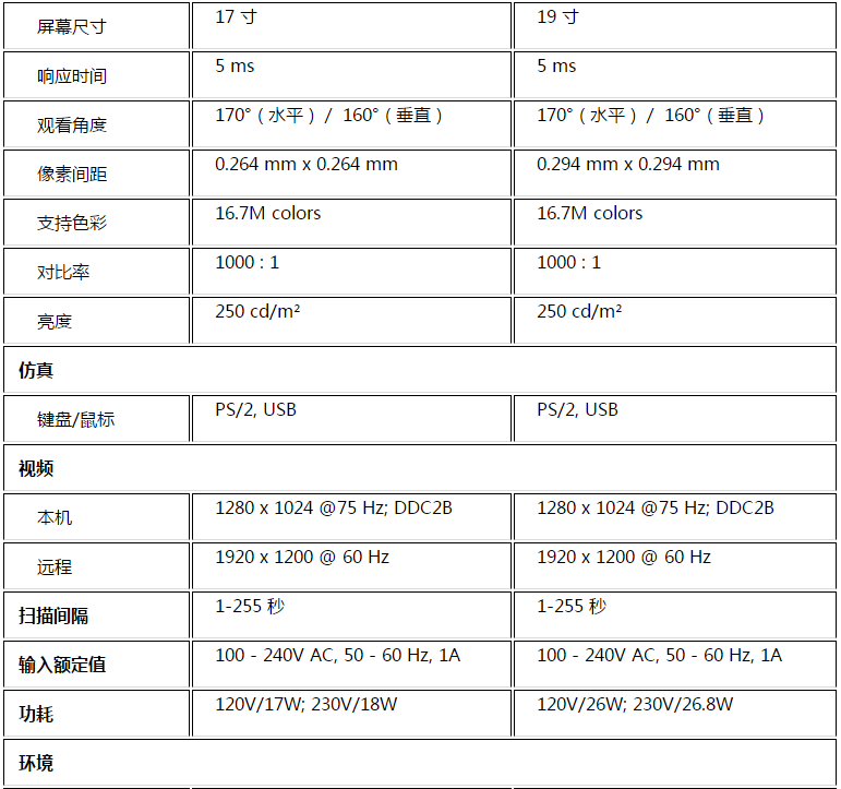 双接口- 支持配备PS/2或USB键盘及鼠标的服务器与控制端