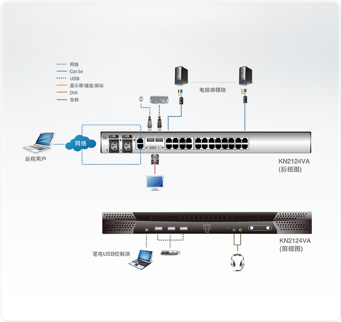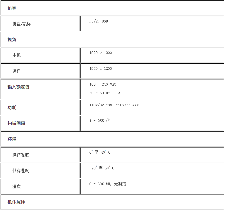 支持PS/2、USB、Sun Legacy(13W3) 及串口(RS-232) 连接