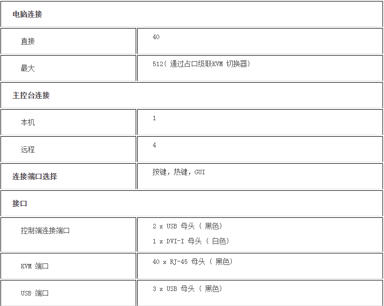 支持PS/2、USB、Sun Legacy(13W3) 及串口(RS-232) 连接