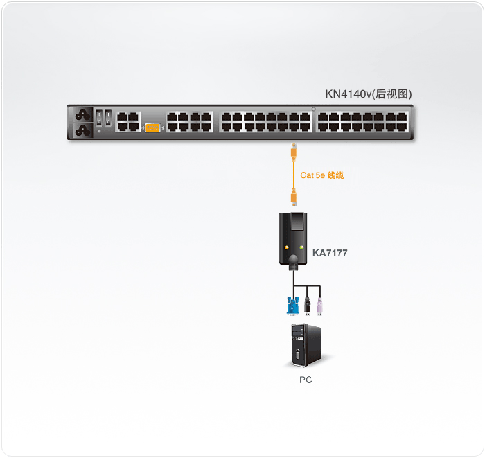 电脑端模块采自动转换设计,可弹性使用多种接口(PS/2, USB)控制所有类型服务器(PC, Mac, Sun)
