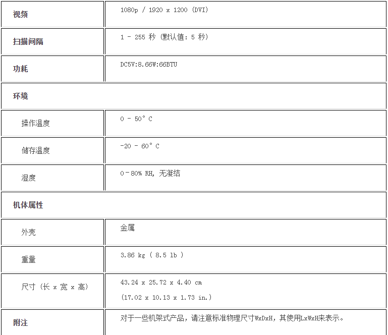 视频分辨率 - 高可达1080p/1920x1200@60Hz