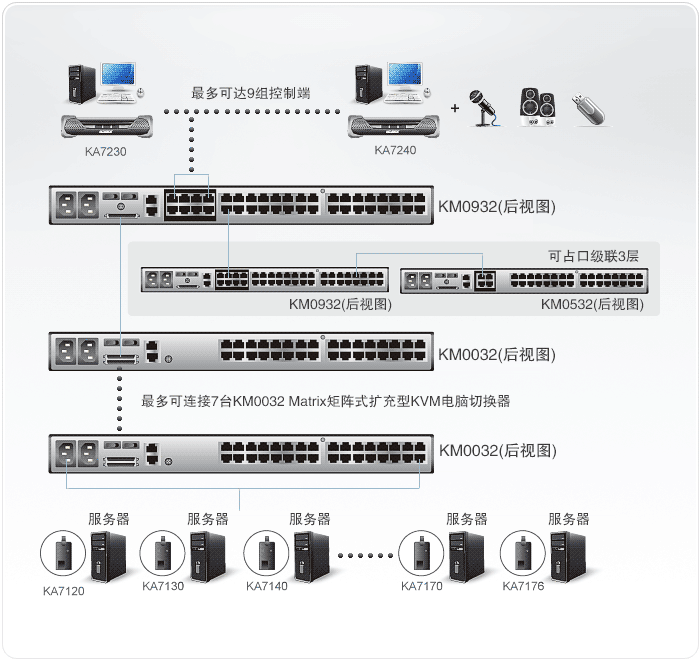 •矩阵式KVM多电脑切换器可占口联三层