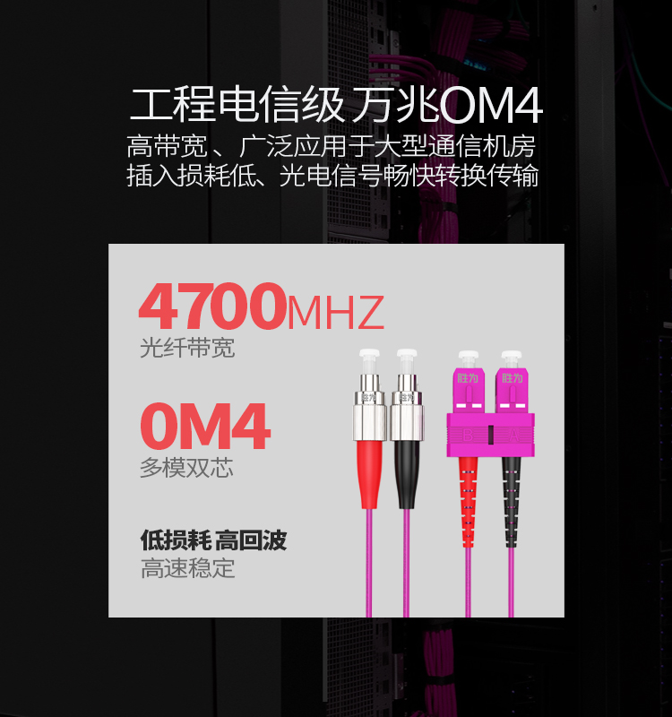 产品规格:SC/UPC-FC/UPC OM4多模双芯3mm 50/125