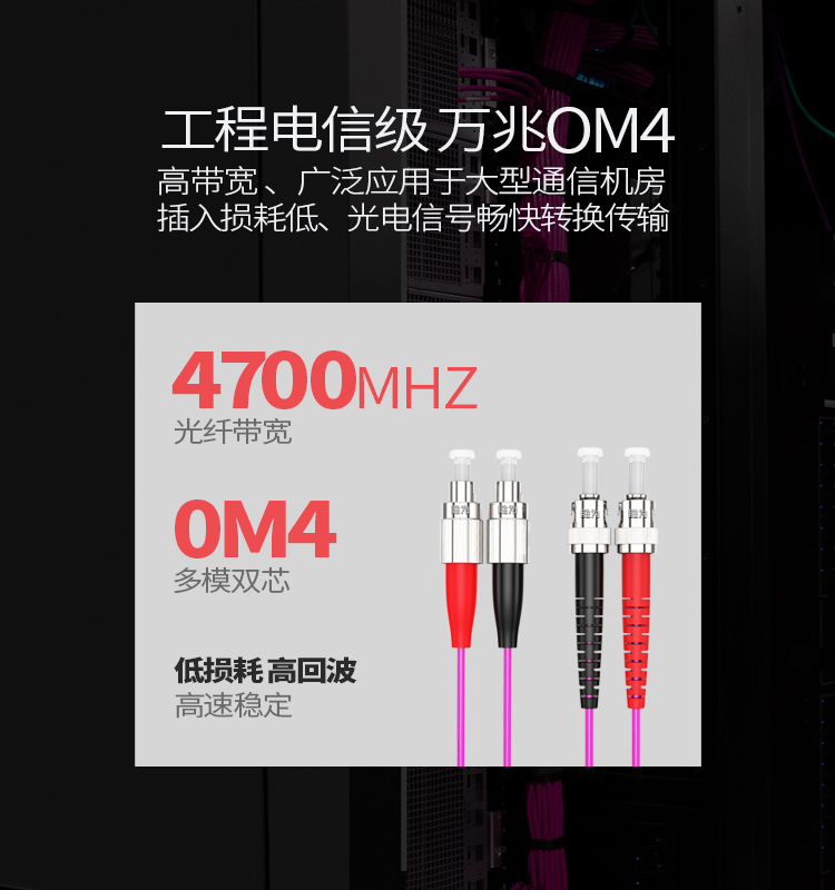产品规格:FC/UPC-ST/UPC OM4多模双芯3mm 50/125