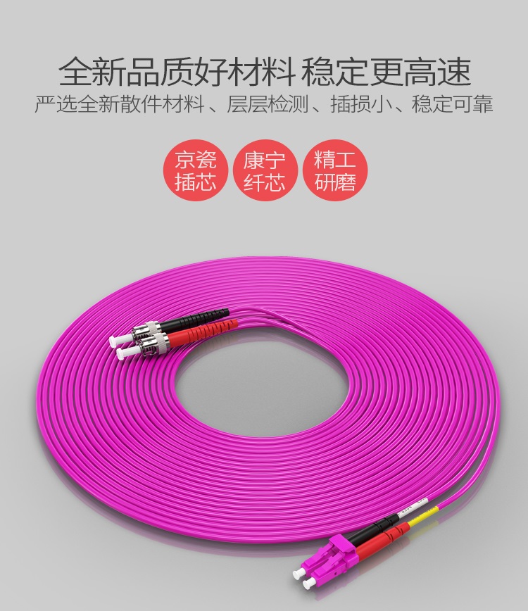产品规格:LC/UPC-ST/UPC OM4多模双芯2mm 50/125