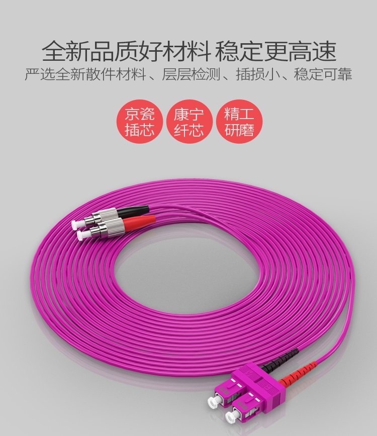 产品型号:FSFO-2030/2050/2100/2150/2200/2250/2300/2350/2400/2450/2500 产品规格:SC/UPC-FC/UPC OM4多模双芯3mm 50/125