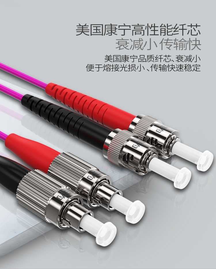 产品型号:FTFO-2030/2050/2100/2150/2200/2250/2300/2350/2400/2450/2500 产品规格:FC/UPC-ST/UPC OM4多模双芯3mm 50/125