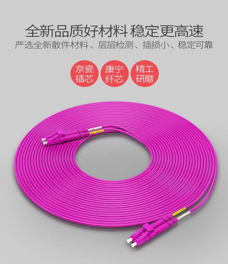 产品型号:FLLO-2030/2050/2100/2150/2200/2250/2300/2350/2400/2450/2500 产品规格:LC/UPC-LC/UPC OM4多模双芯2mm 50/125
