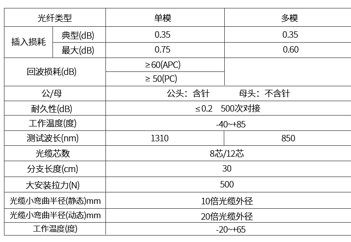 光纤芯数:8芯/12芯
