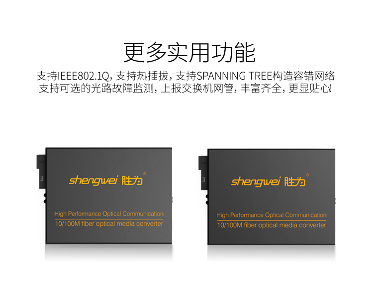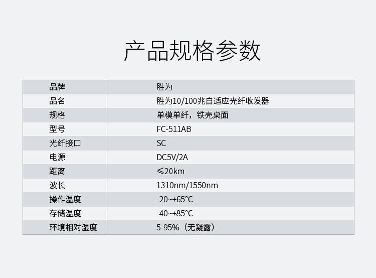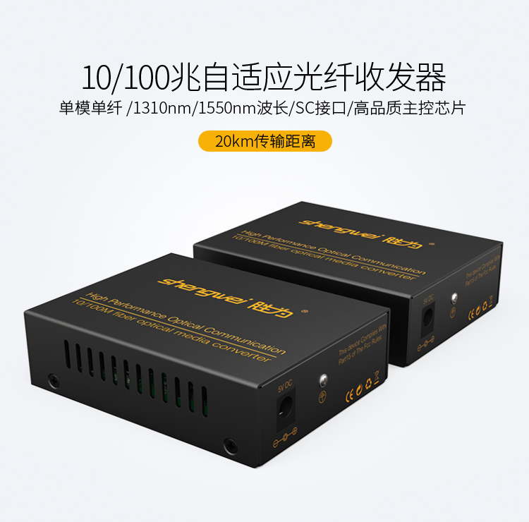 胜为FC-511AB 工程光纤收发器 10/100百兆自适应单模单纤