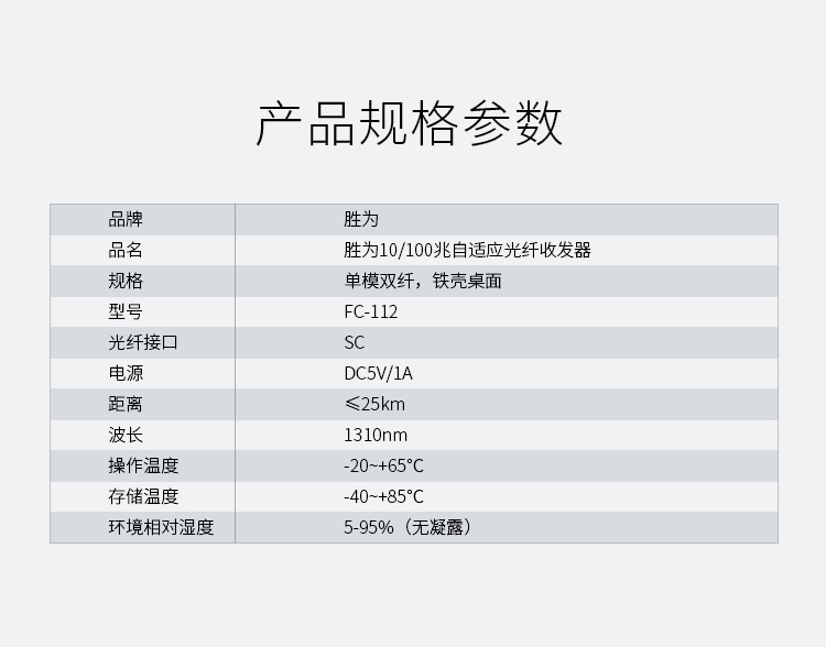 型号:胜为(shengwei)FC-112 高端工程定制 自适应光纤收发器 光电转换器