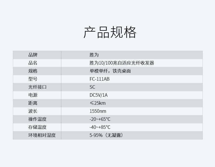 型号:胜为(shengwei)FC-111AB 高端工程定制 光纤收发器 光电转换器(一对)