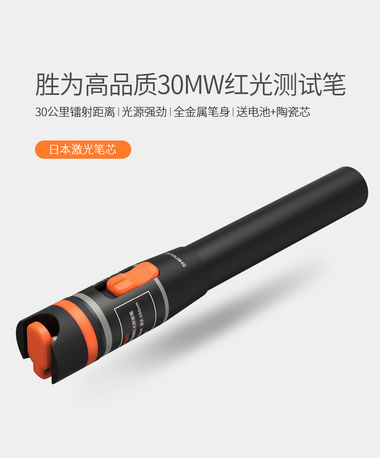 胜为 FB-130光纤红光笔 30公里功率>30mW 金属镭射红光源通光/打光故障测试笔